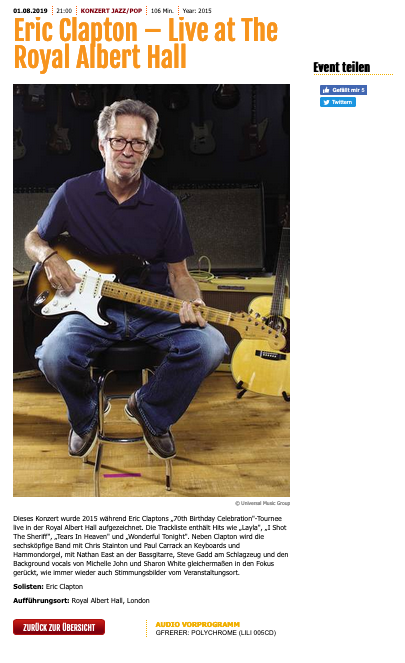 Gottfried David Gfrerer – Audio Vorprogramm am Wiener Rathausplatz zu Eric Clapton – Live at the Royal Albert Hall.